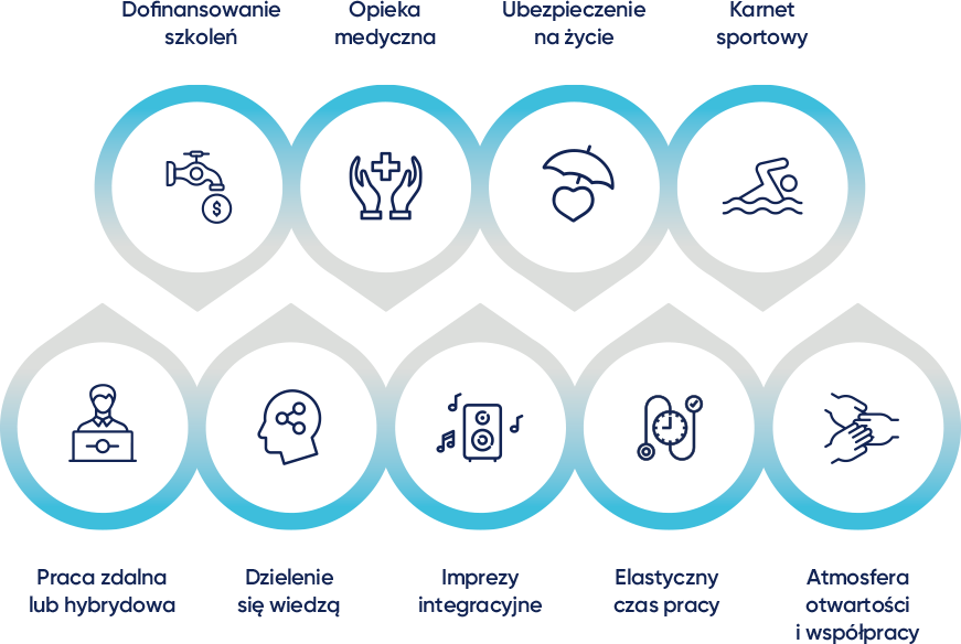 Chcesz pracować w miejscu, w którym zadania, jakie otrzymujesz są dostosowane do Twoich kompetencji? Nie boisz się nowych wyzwań i wciąż chcesz się rozwijać? A może zależy Ci na stabilnym wynagrodzeniu i dodatkowych benefitach takich, jak prywatna opieka medyczna lub ubezpieczenie na życie?